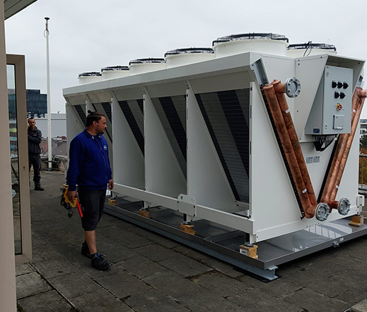 Luftgekühlte Kühleinheiten eignen sich für kleinere und mittlere Anwendungen. Durch ihre Luftkühlung ist eine Außeninstallation notwendig und ihr Betrieb erreicht eine beachtliche Energieeffizienz. Diese Geräte sind für Kühl- oder Wärmepumpenfunktion vorgesehen