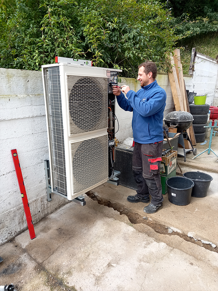 Majitel rodinného domu si svépomocí provedl demontáž stávajícího kotle. Naše společnost se pak postarala o úpravu stávající přípravy teplé užitkové vody obsahující demontáž dvou elektrických bojlerů, úpravy rozvodů pitné vody se záměrem sjednocení a napojení na nový zdroj vytápění. Vzhledem k umístění jednotek bylo nutné provést drobné stavební úpravy v podobě umístění trubek do podlahy, aby nepřekážely průchodu v exteriéru a nesnižovaly výšku stropu v interiéru.